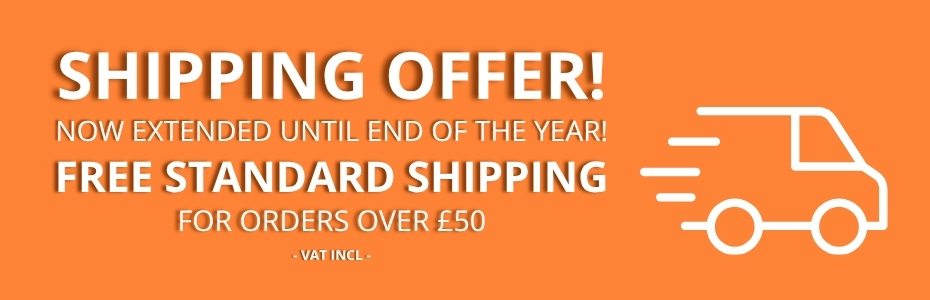 STANDARD SHIPPING NOW ONLY £4.95 – FREE STANDARD SHIPPING FOR ORDERS OVER £50 – VAT INCL